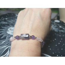 Bracelet en Pierre d'Améthyste et Quartz Rose Chevron Longueur 15 cm+ 5 cm chainette